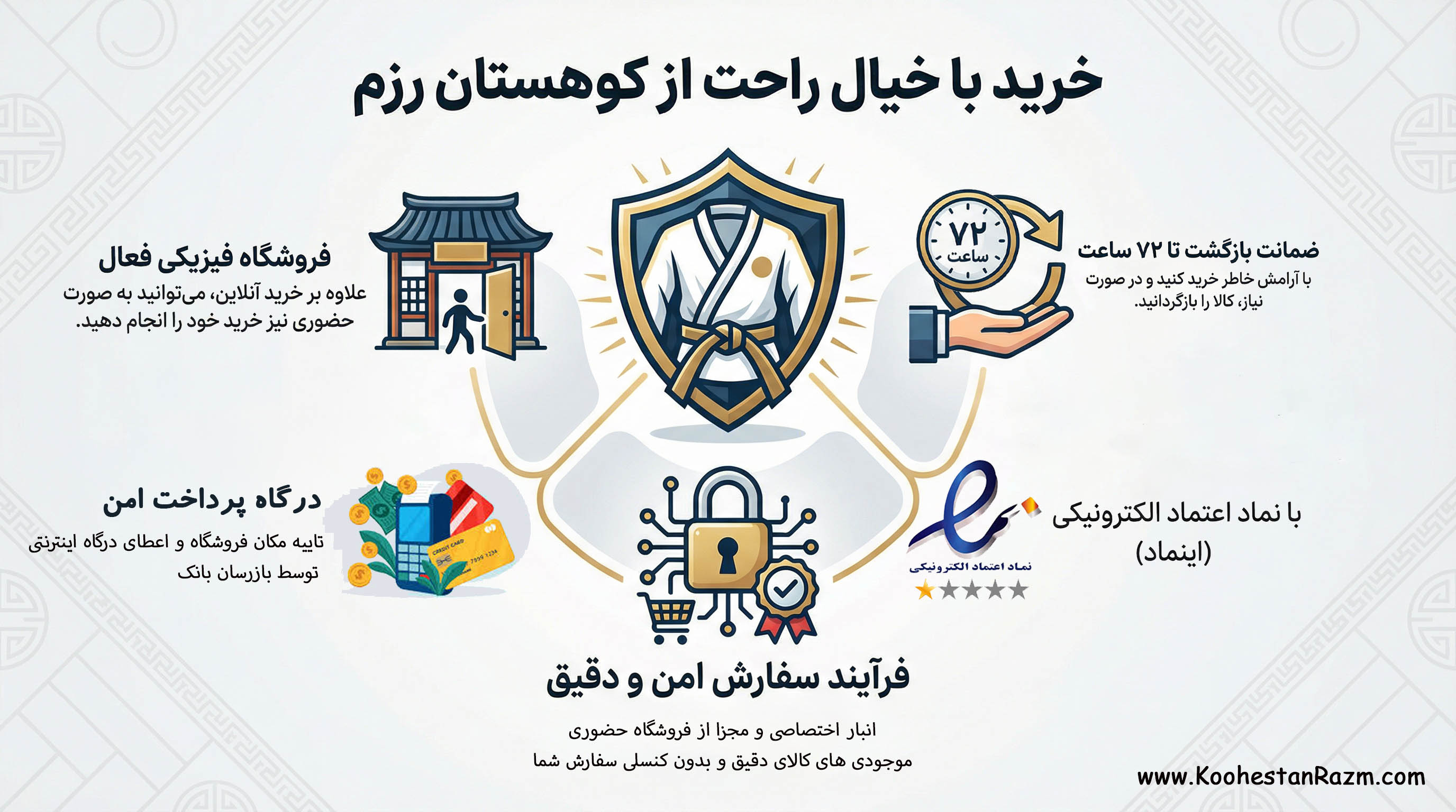 کوهستان رزم علاوه بر فعالیت آنلاین، دارای فروشگاه فیزیکی فعال نیز می باشد. موجودی سایت از طریق انبار مجزا و مدیریت دقیق کنترل می شود و فرآیند سفارش با زیرساخت های قانونی، پرداخت امن و نماد اعتماد الکترونیکی انجام می گیرد.