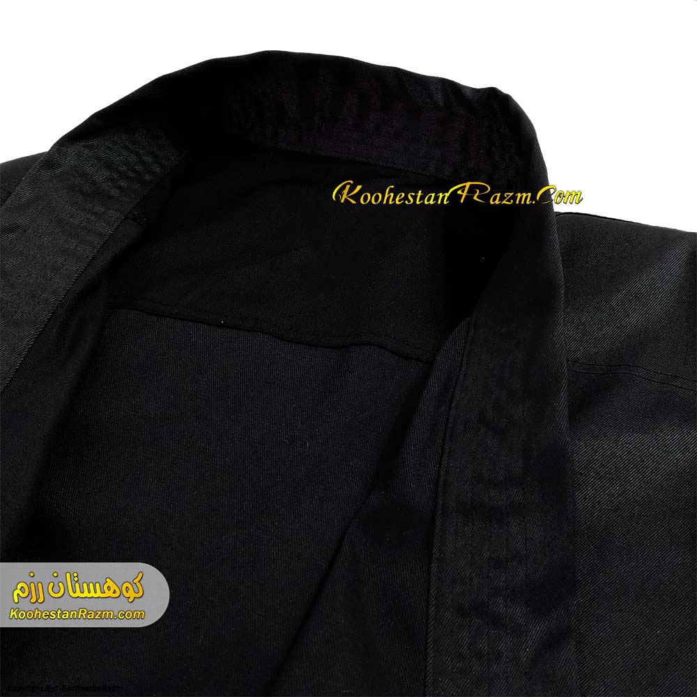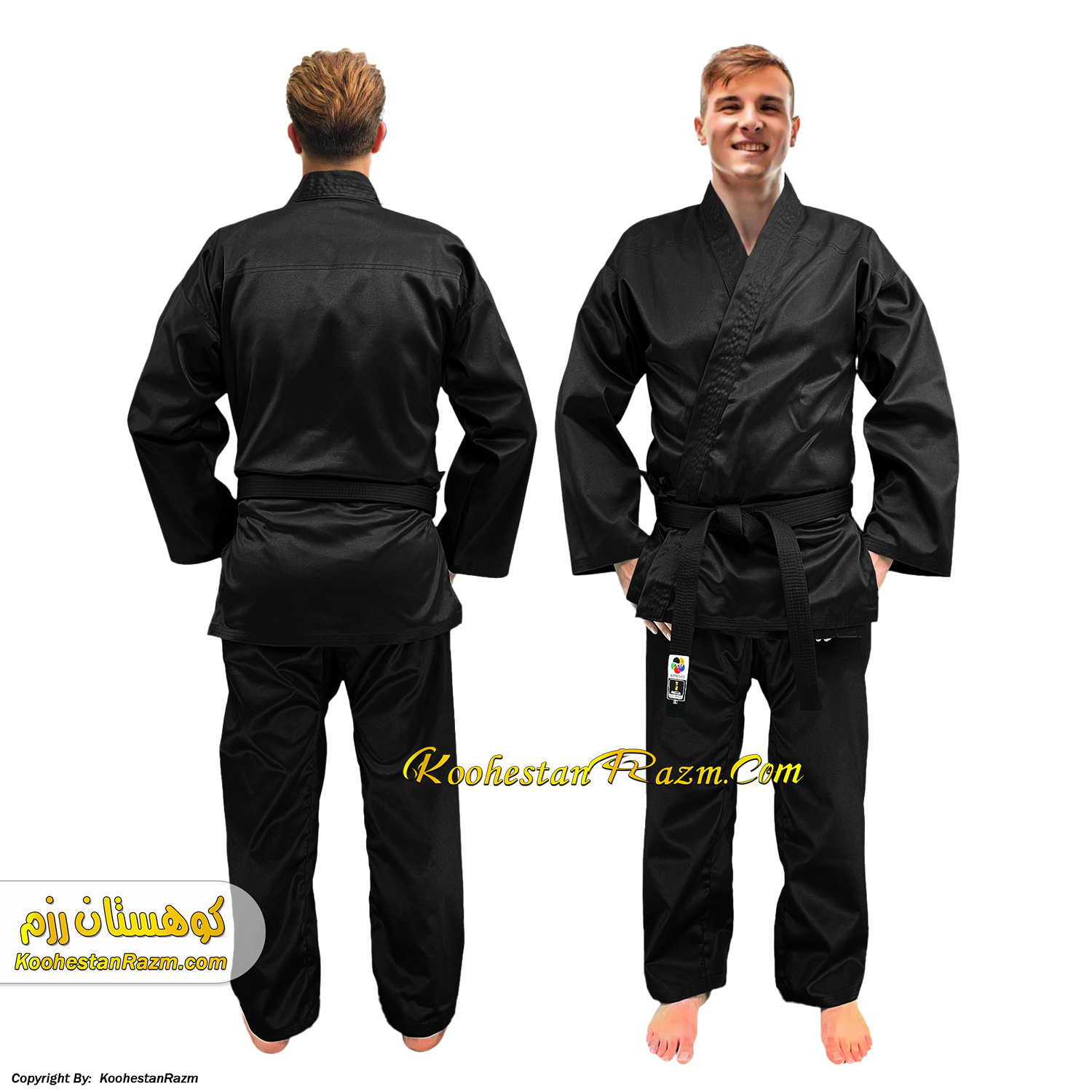 این لباس از پارچه ای با ترکیب ۷۰ درصد پنبه و ۳۰ درصد پلی استر تهیه شده و بافت کج راه آن استحکام بالا را با انعطاف پذیری مطلوب ترکیب می کند. پارچه با گرماژ ۴۶۰ گرم انتخاب شده تا در عین مقاومت، وزن و ضخامت ایده آلی برای تمرینات نیمه حرفه ای و حرفه ای داشته باشد. کیفیت دوخت لباس بسیار خوب است و به گونه ای طراحی شده که در شست وشو هیچ گونه آبرفت و تغییر اندازه پیدا نکند. رنگ مشکی یکدست لباس در برابر شست وشو ثابت مانده و رنگ دهی ندارد و به همین دلیل ظاهر حرفه ای خود را برای مدت طولانی حفظ می کند. این مدل فقط در سایزهای بزرگسال تولید می شود و در هفت اندازه از قد 155 سانتی متر تا 210 سانتی متر عرضه می گردد تا مربیان و ورزشکاران حرفه ای بتوانند به راحتی سایز مناسب خود را انتخاب کنند. طراحی رسمی این لباس بدون هیچ آرم روی پیراهن و شلوار انجام شده و کمربند سفید به همراه آن ارائه نمی شود. کمری شلوار از نوع بندی – کشی می باشد که راحتی و فیت شدن بهتر را فراهم می کند و امکان خرید شلوار به صورت جداگانه برای این مدل وجود ندارد. چهار بند تنظیم بر روی لباس تعبیه شده تا بتوان آن را متناسب با بدن تنظیم کرد. این محصول به طور ویژه برای سطوح نیمه حرفه ای و حرفه ای طراحی شده و همراه با عکس های متعدد از جزئیات لباس و جدول کامل سایزبندی ارائه می شود تا انتخاب و خریدی مطمئن داشته باشید.