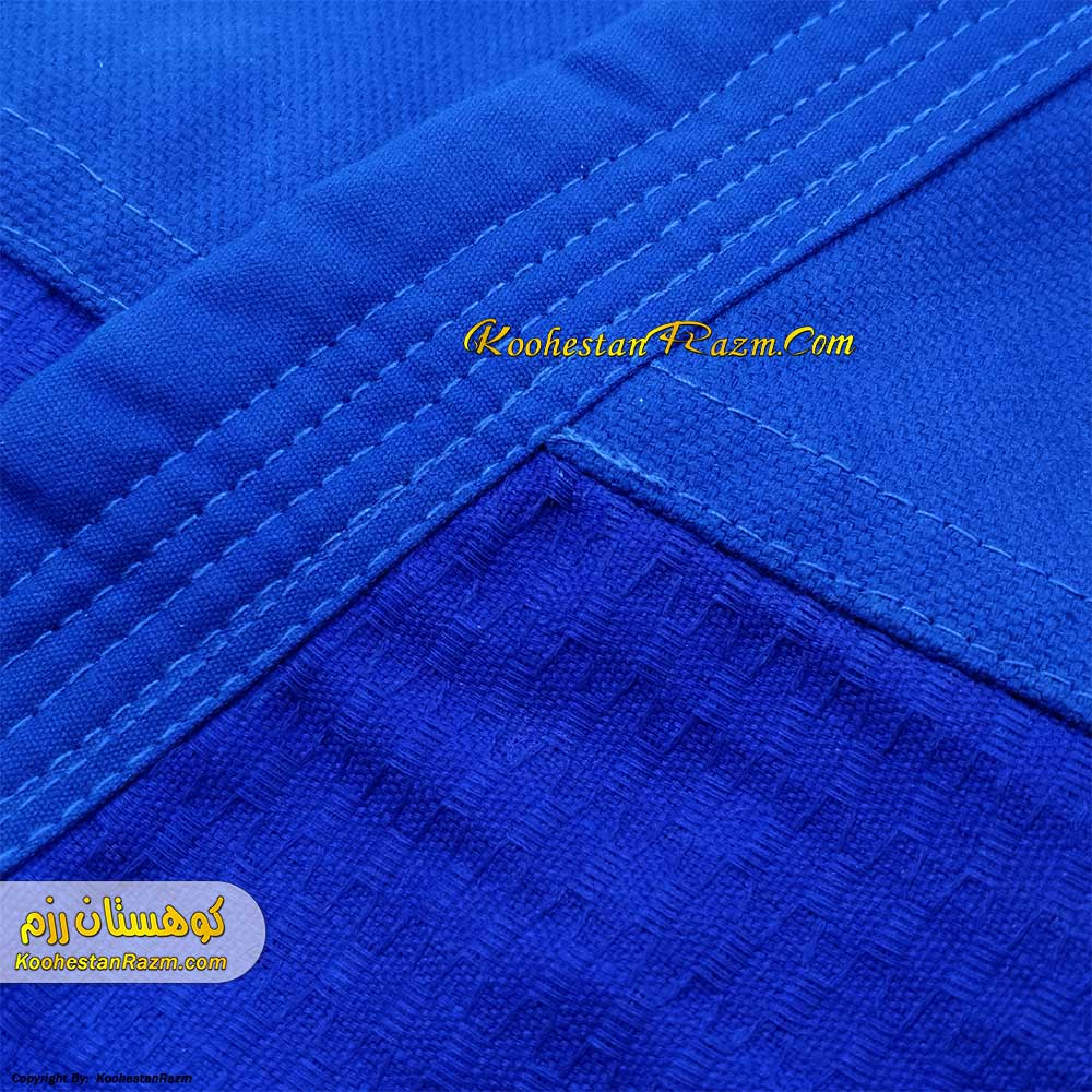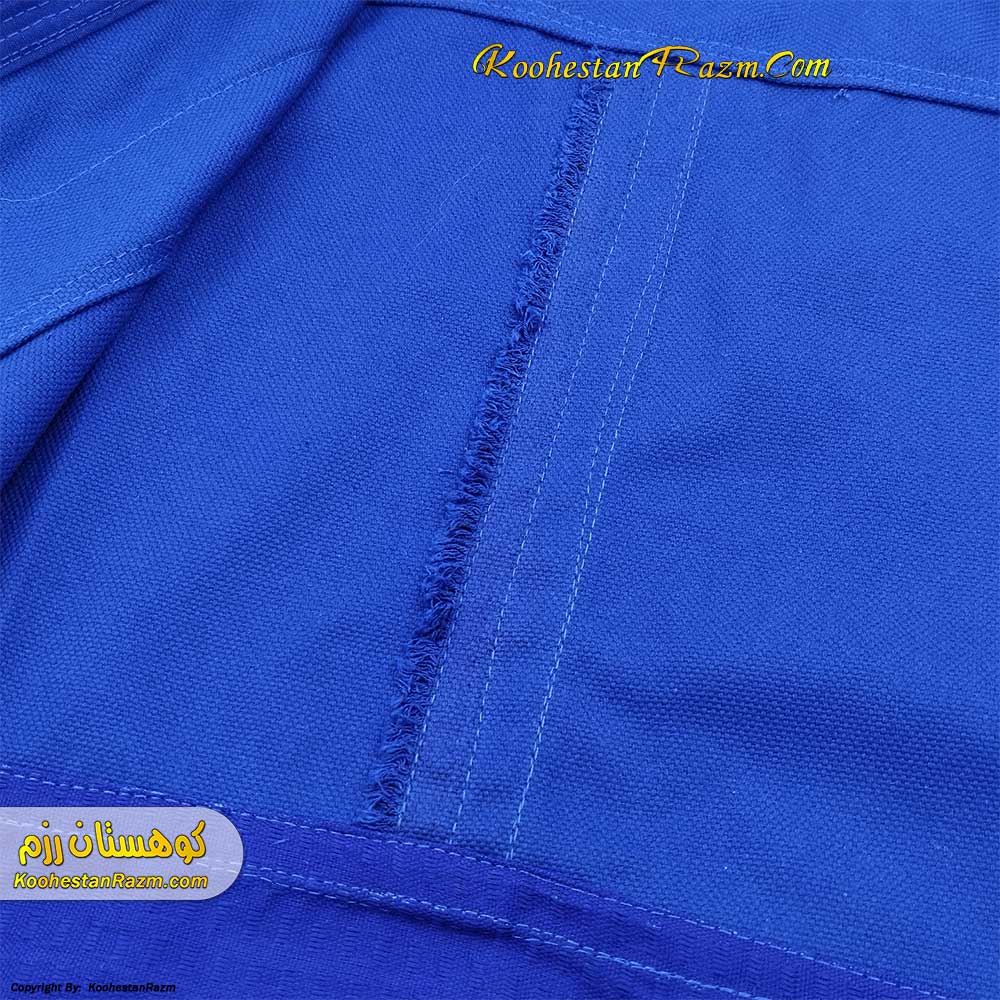 لباس جودو آبی اقتصادی با طرح دوخت خورجینی تولید شده و از ترکیب پارچه پلی استر و پنبه ساخته شده تا هم مقاومت و دوام بالا داشته باشد و هم راحتی لازم برای تمرینات و مسابقات را فراهم کند. کیفیت دوخت لباس عالی است و با وجود آبرفت طبیعی در شستشو، رنگ دهی ندارد و جلوه جذاب و یکنواخت لباس حفظ می شود.
