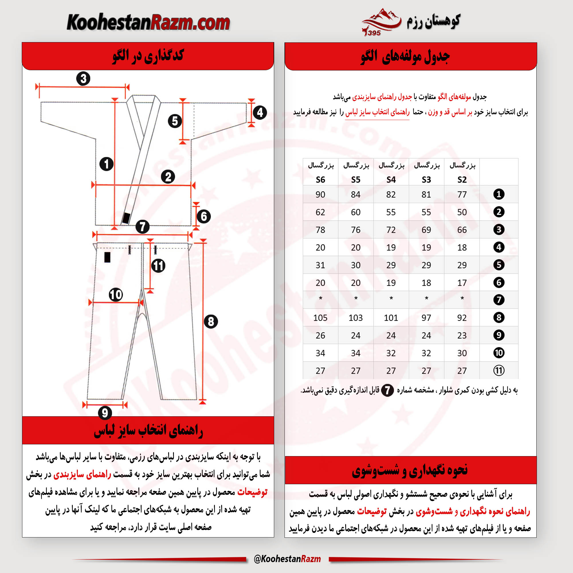توصیه می کنیم قبل از خرید، حتماً به صفحه دسته بندی انواع لباس های جودو مراجعه کنید و راهنمای سایزبندی کامل آن را مطالعه نمایید. این اطلاعات به شما کمک می کند سایز دقیق و مناسب خود را انتخاب کنید و از هرگونه تنگی یا گشادی لباس جلوگیری کنید. رعایت دقیق سایزبندی نه تنها راحتی شما را تضمین می کند، بلکه طول عمر لباس و عملکرد حرفه ای شما در تمرین و مسابقه را نیز افزایش می دهد.