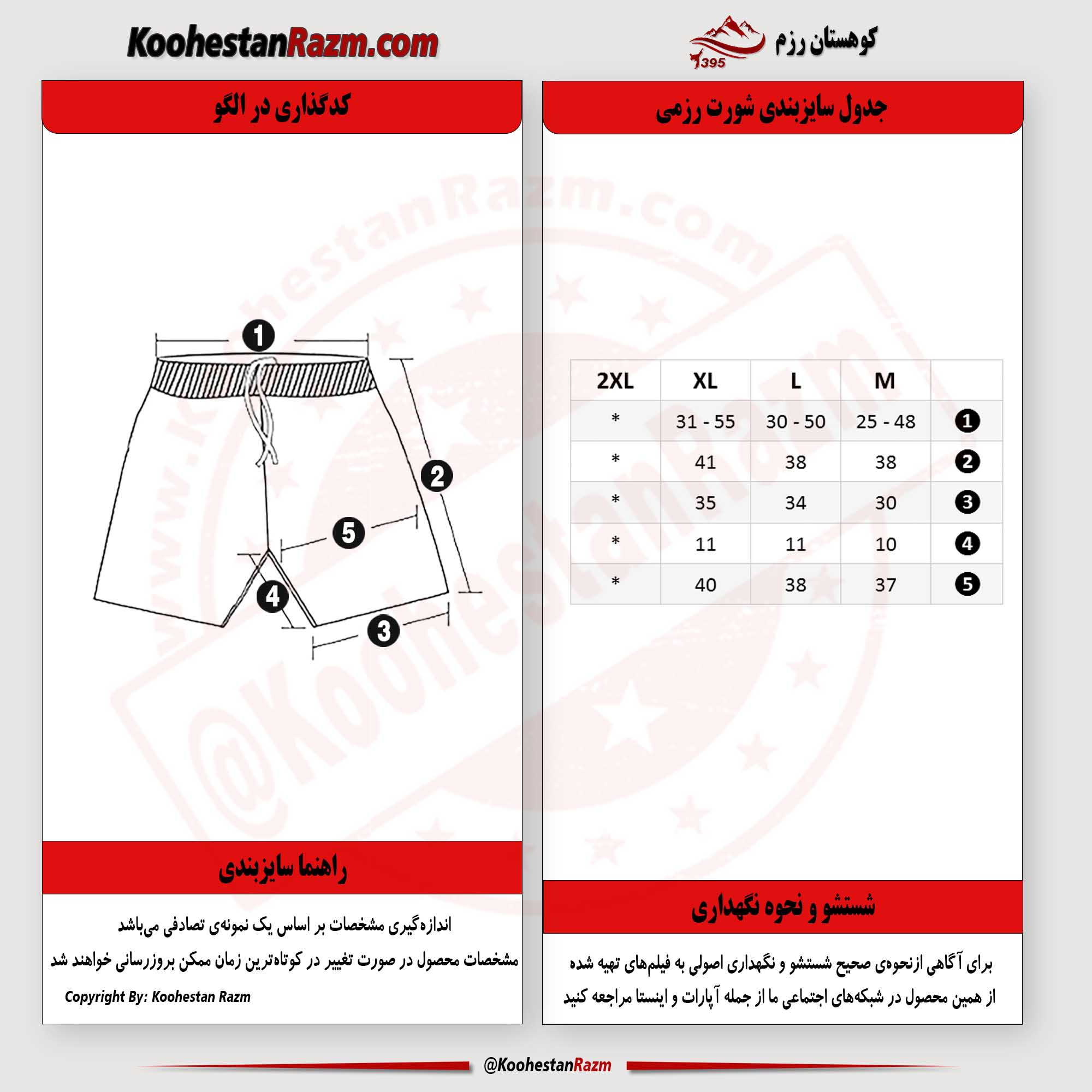 برای اینکه بهترین سایز رو انتخاب کنی، حتماً به جدول سایزبندی نگاه کن. اگر بین دو سایز مرددی، پیشنهاد می کنیم سایز بزرگ تر رو انتخاب کنی تا هنگام اجرای ضربات پا و زانو، آزادی حرکت بیشتری داشته باشی. این مدل با پاچه های کوتاه تر نسبت به شورت های بوکس طراحی شده تا در تمرینات موی تای و کیک بوکس، ضربات پا به راحتی و با تسلط کامل انجام بشه.