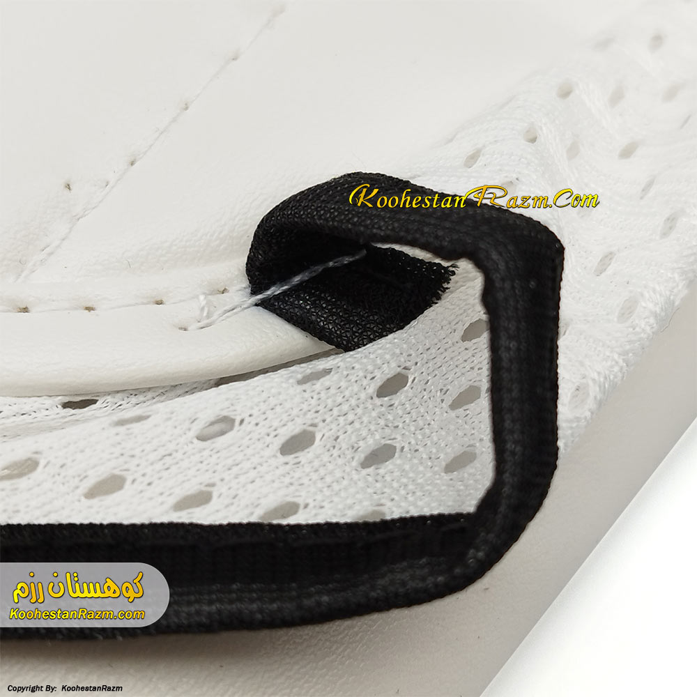 رویه از پی.یو با رنگ مات با بافت ریز است که ظاهر تمیز و یکدست ایجاد می کند. لایه داخلی پلی فوم استاندارد، ضربه گیری سبک دارد و برای کاراته کاهایی که سبک شان بر اساس کنترل ضربات است، بهترین تطابق را ایجاد می کند. این مدل پشت بند ندارد و با کشی توری دار به سادگی و سرعت پوشیده می شود؛ دقیقاً همان چیزی که اکثر هنرجویان می خواهند: راحت، سریع، بی دردسر.